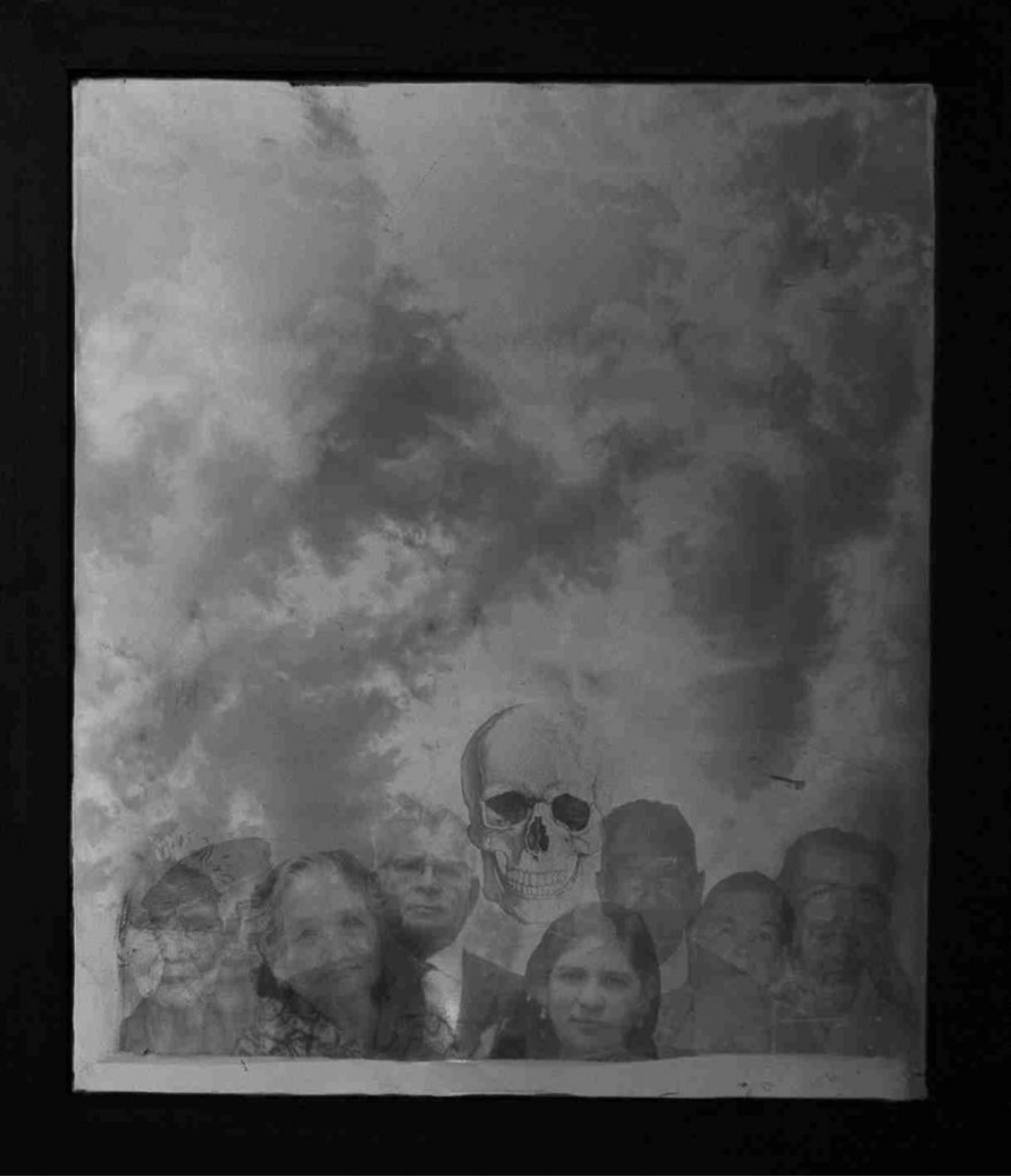 Sobre un espejo muy antiguo, el espectador refleja su rostro entre otros de gente fallecida, generando un momento de reflexión hacia su presente y pasado. Sobre quienes fueron sus seres queridos y ahora están solo en su recuerdo.